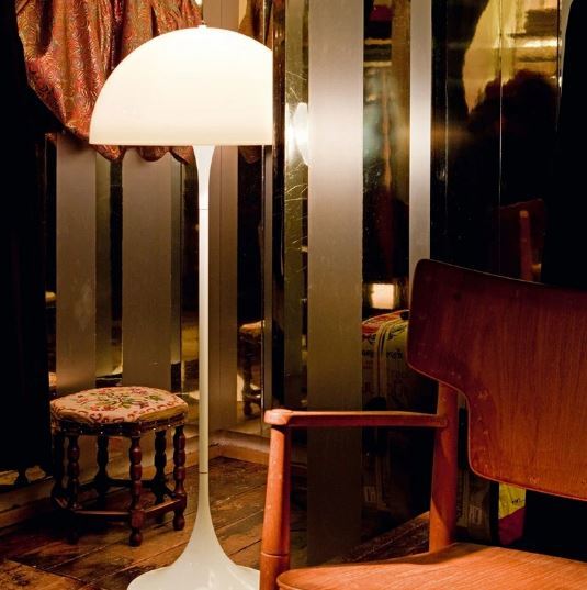Si os ha gustado el modelo anterior pero estáis buscando una lámpara de pie, el mismo diseñador Verner Panton creó esta lámpara que cumple con todos los detalles de la lámpara de mesa que os hemos mostrado anteriormente pero con una altura ideal para colocarla cerca del sofá o del sillón, para disfrutar de una zona agradablemente iluminada.
